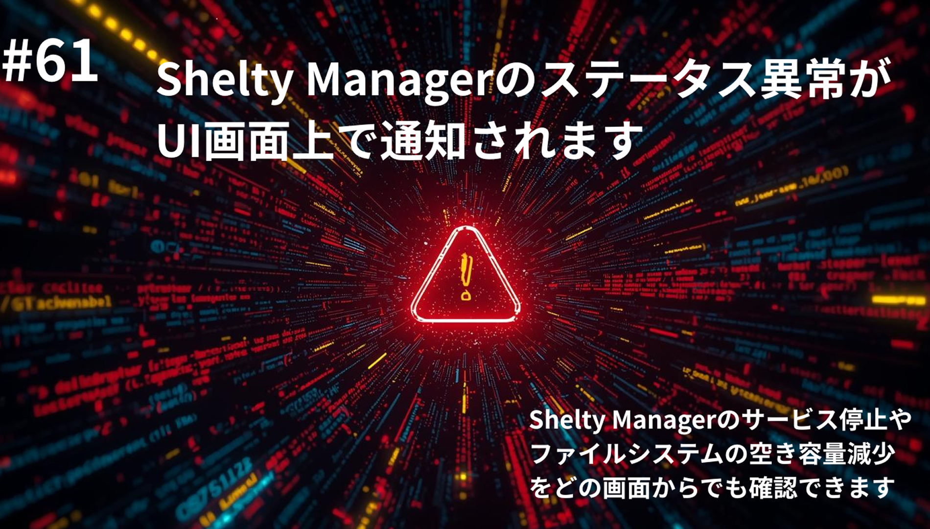 V3.1.0でShelty Managerのステータス異常がUI画面のヘッダー部分で通知されるようになりました。 これにより、画面のどこからでもShelty Managerのステータスに異常が発生していることを確認することができ、より早い対処と安定運用が可能となります。 本記事では、「Shelty Managerステータス異常のUI画面での通知」機能について紹介いたします。